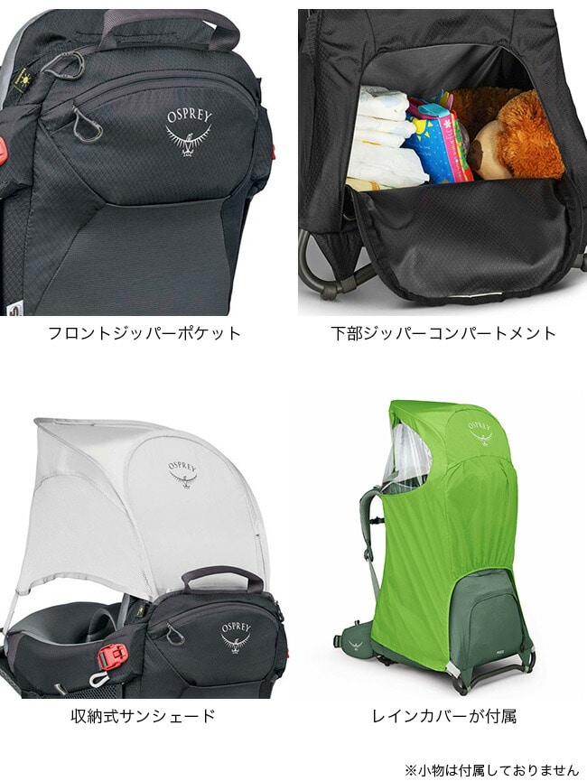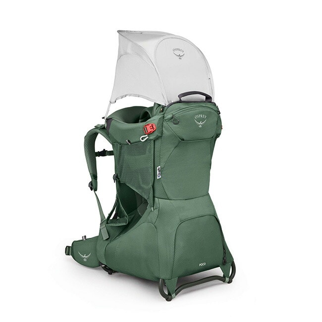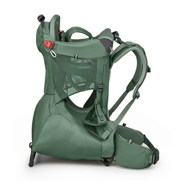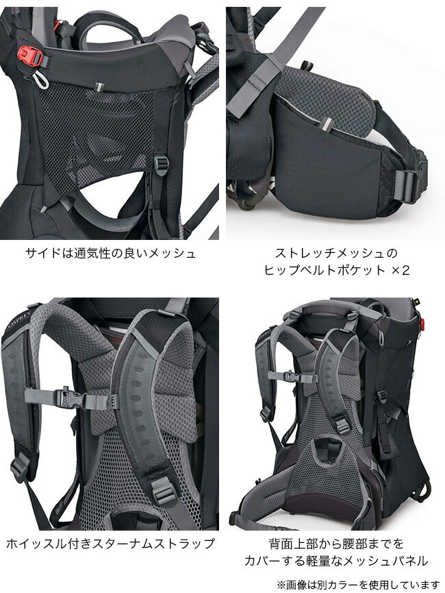 チャイルドシートはフレームとパッド入りで安全性が高く、アウトドアでも安心して子どもを背負うことができます。