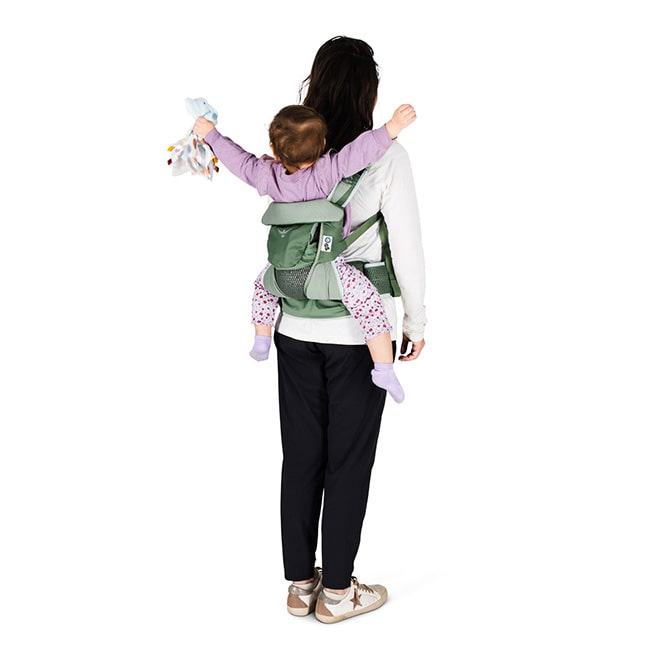 登山パックのようなショルダーベルトや幅広のヒップベルトが、しっかりとホールドして荷重を分散するので、長時間の抱っこでも快適な背負い心地です。