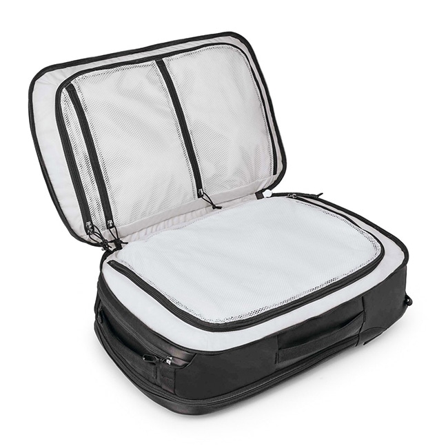 トラベルパックは、出張や旅行に便利な機能を備えた、多くの機内に持ち込み可能なサイズ。ウィールドダッフルのハンドルに通すことが可能な背面のパススルースリーブや、保安検査場でノートPCを素早く取り出せる背面側ポケット内のノートPCスリーブなど、旅行で重宝する機能を備えています。