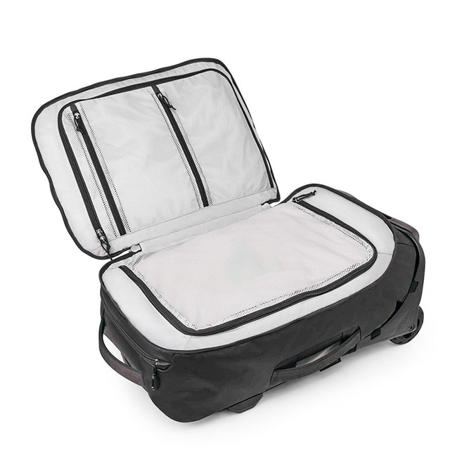 キャリーオンは出張や旅行に便利な機能を備えた、多くの機内に持ち込み可能なサイズのホイールパックです。着替えや洗濯物、PCやモバイルツール、ステーショナリーを効率よく収納し、あとは出発するだけです。