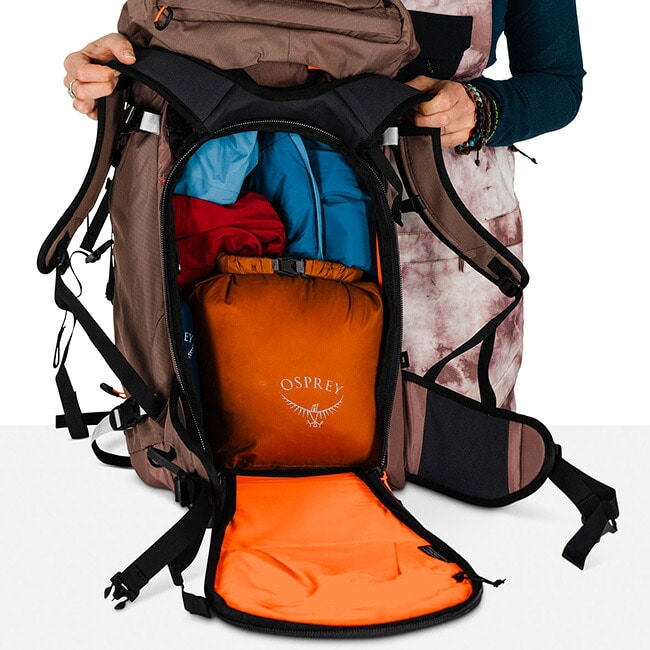 アバランチギアに素早くアクセスできる前面のU型ジッパー