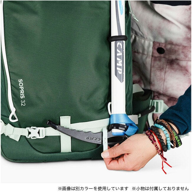 ヘルメットキャリーやスキー/スノーボードアタッチメントポイントなど、雪山に特化した機能を備えています。