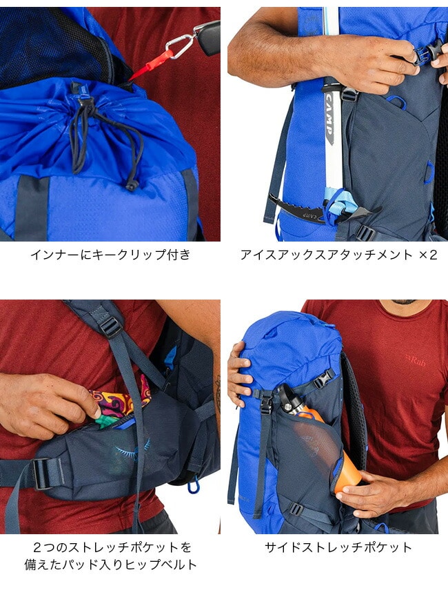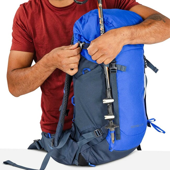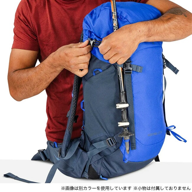 メイン荷室の上部にはトップリッドを備えるほか、ヒップベルトポケットに必需品を収納できます。