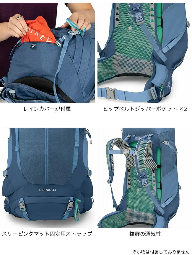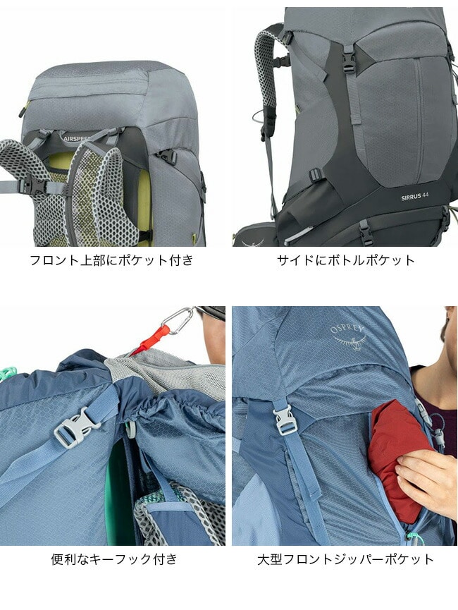 44は1~2泊のバックパッキングやデイハイキングに対応するトップローダーです。※この商品はウィメンズモデルです。