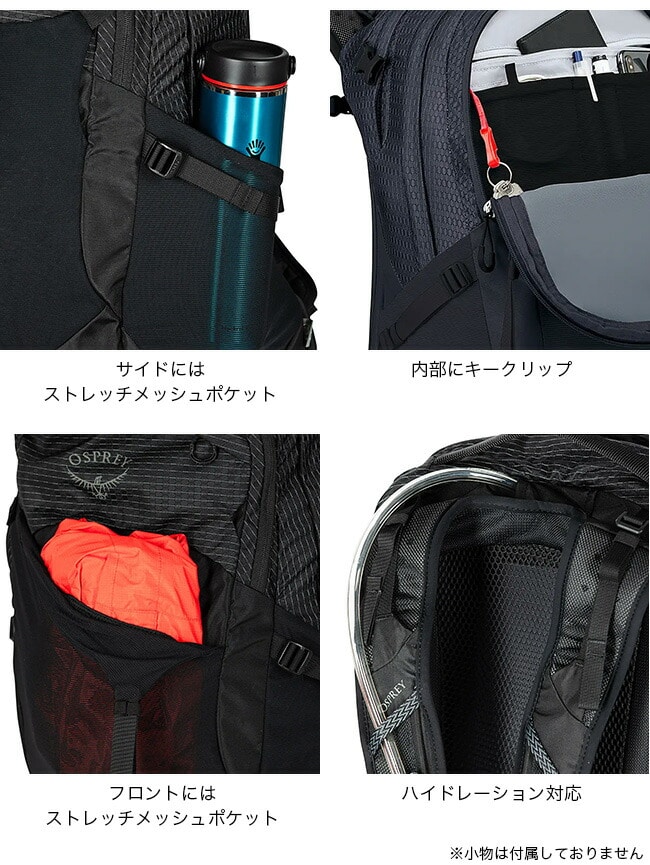 32リットルとたっぷり入る収納力で、サイドとフロントにはストレッチメッシュポケットも装備。