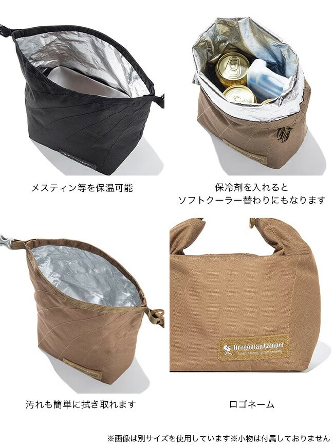 内部はフォーム入りのアルミフィルム仕様で、保冷剤を入れるとソフトクーラー替わりにもなり、汚れも簡単に拭き取れます。