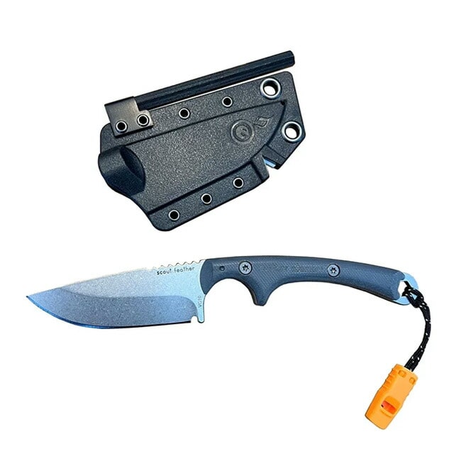 スカウトフェザーナイフは、アウトドアギアとしての基本を押さえつつ、火起こしや緊急サインなどサバイバル性能も備えた多機能モデルです。初心者からベテランまで信頼できる相棒として、どんな冒険にも自信をもって携行できます。