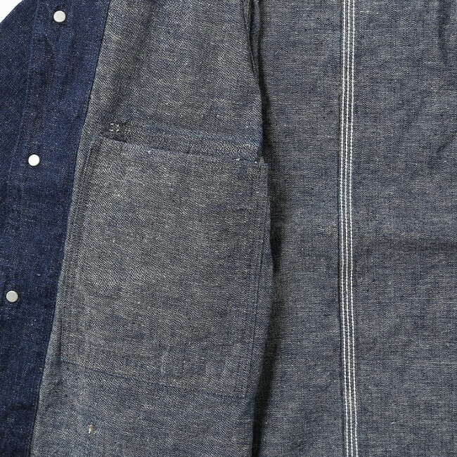 ワンウォッシュならではの濃いインディゴブルーの状態からガシガシ着倒し、アタリや色落ちを楽しめる“一生もの”になるであろうジャケットです。
