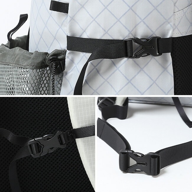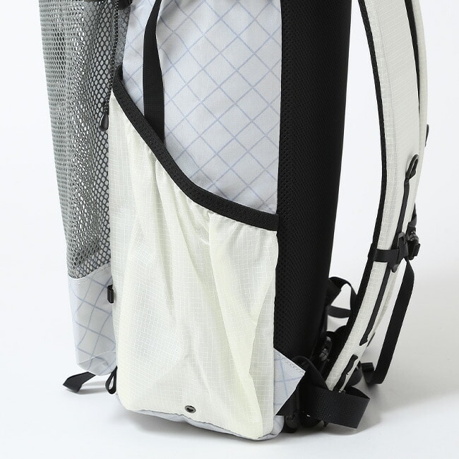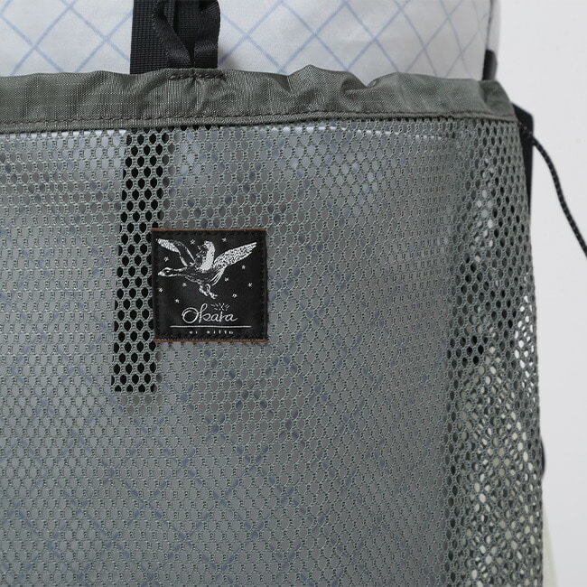 フロントポケットにはメッシュ素材、サイドポケットには強度を重視した 210D のナイロンを使用しました。