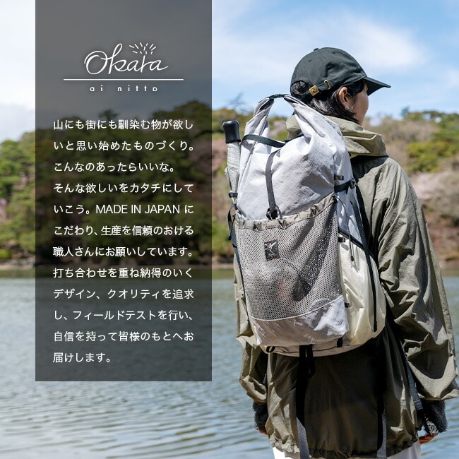 デイハイクはもちろん、小屋泊からちょっとがんばってUL装備のテント泊まで、新田あいさんの"こんなの欲しかった"をカタチにしました。mittenとはスウェーデン語で「真ん中」の意味。