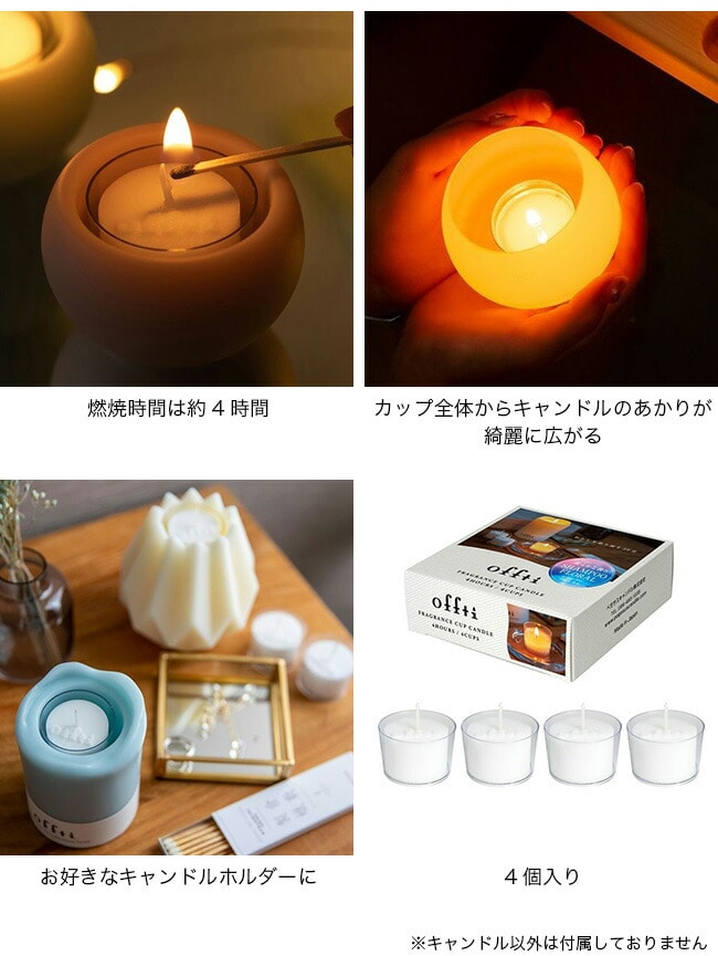 ※キャンドルはカップに入れたまま、底の平らなグラスや陶器などの不燃性の容器に入れてご使用ください。