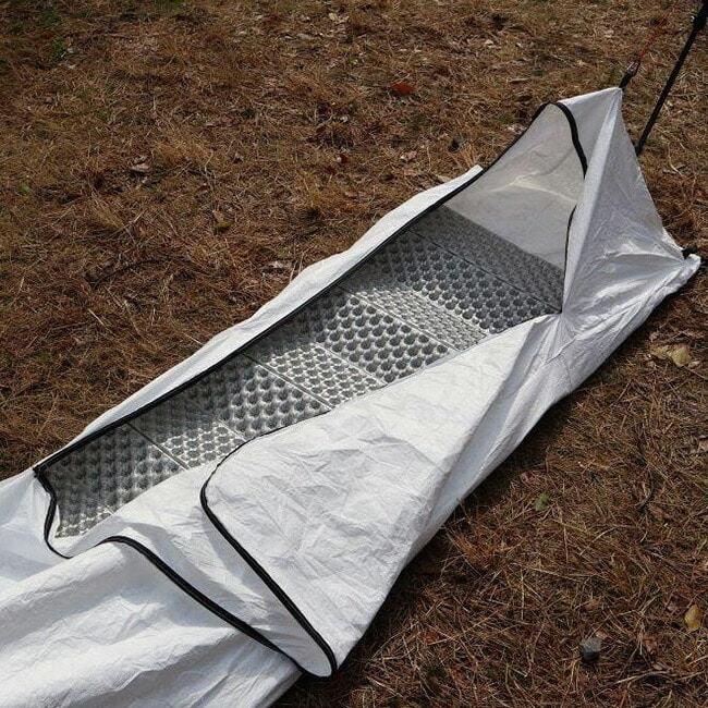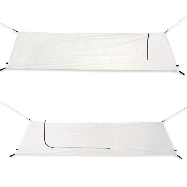 寝袋カバーとしてだけでなく、独立型テントとしても使用できます。出し入れしやすい大型ジッパー。