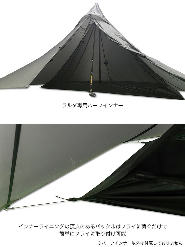 入り口の反対側にはフライに繋げるトグルがあり、ガイロープでフライを外側に張ることでインナーを拡張できます。