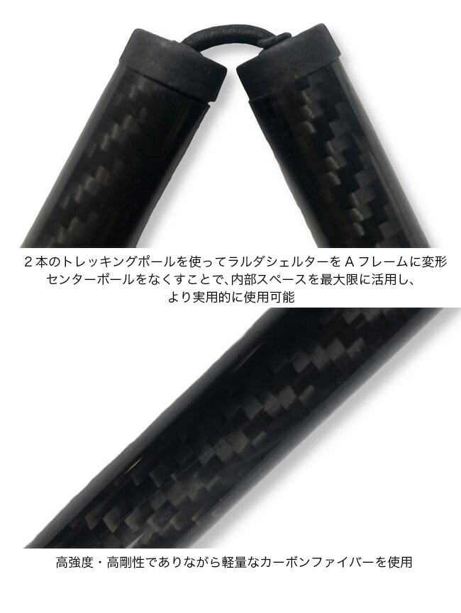 センターポールをなくすことで、内部スペースを最大限に活用し、より実用的に使用できます。