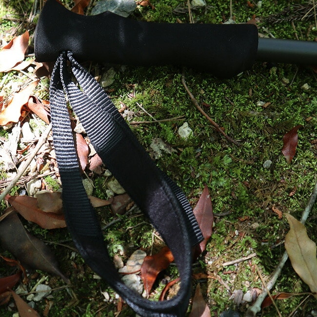 アルミ製ポールに比べて圧倒的に軽く、優れた強度を持ち、長時間の歩行やアップダウンの激しい登山でも負担を大きく軽減します。