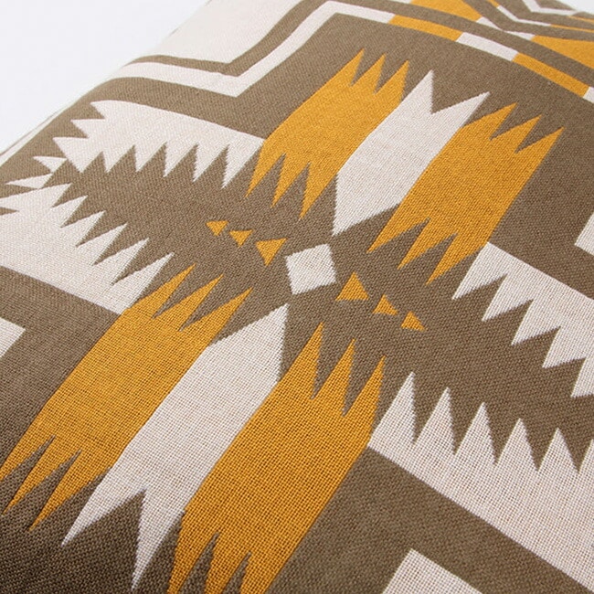 ネイティブモチーフをあしらったジャガード織のデザインは、プリントでは出せない立体感と織物ならではの奥行きがあり、ナチュラルな空間にも、ヴィンテージ感のあるインテリアにも馴染みやすく、流行に左右されない普遍的な魅力を備えています。