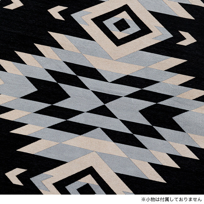 アメリカ先住民の伝統的なモチーフをベースにしつつ、現代のライフスタイルにも馴染む洗練されたカラーリングで仕上げられています。リビングのラグとしてはもちろん、チェアやテーブルとの組み合わせで空間のアクセントにも◎。