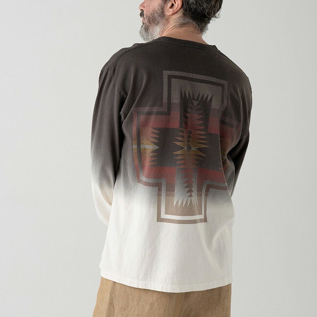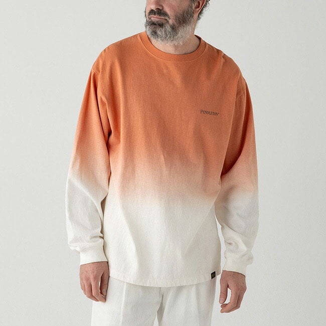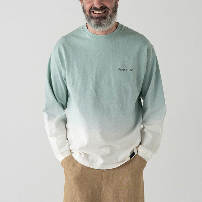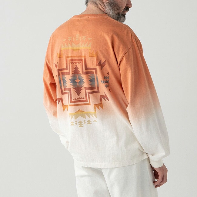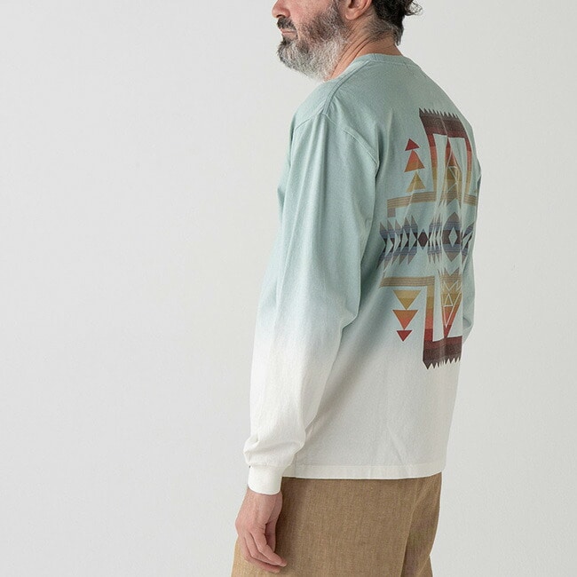 存在感のある背面デザインが際立つ、グラデーション染めロングスリーブ
