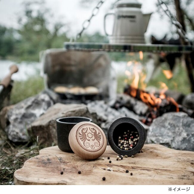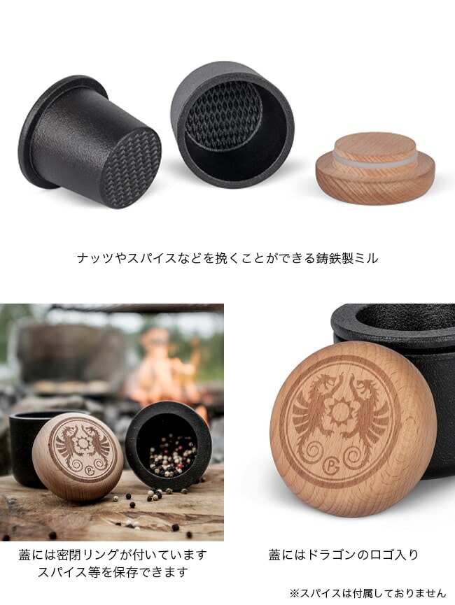 蓋に密閉リングが付いた容器と一体型で、挽いたスパイスを保存できます。