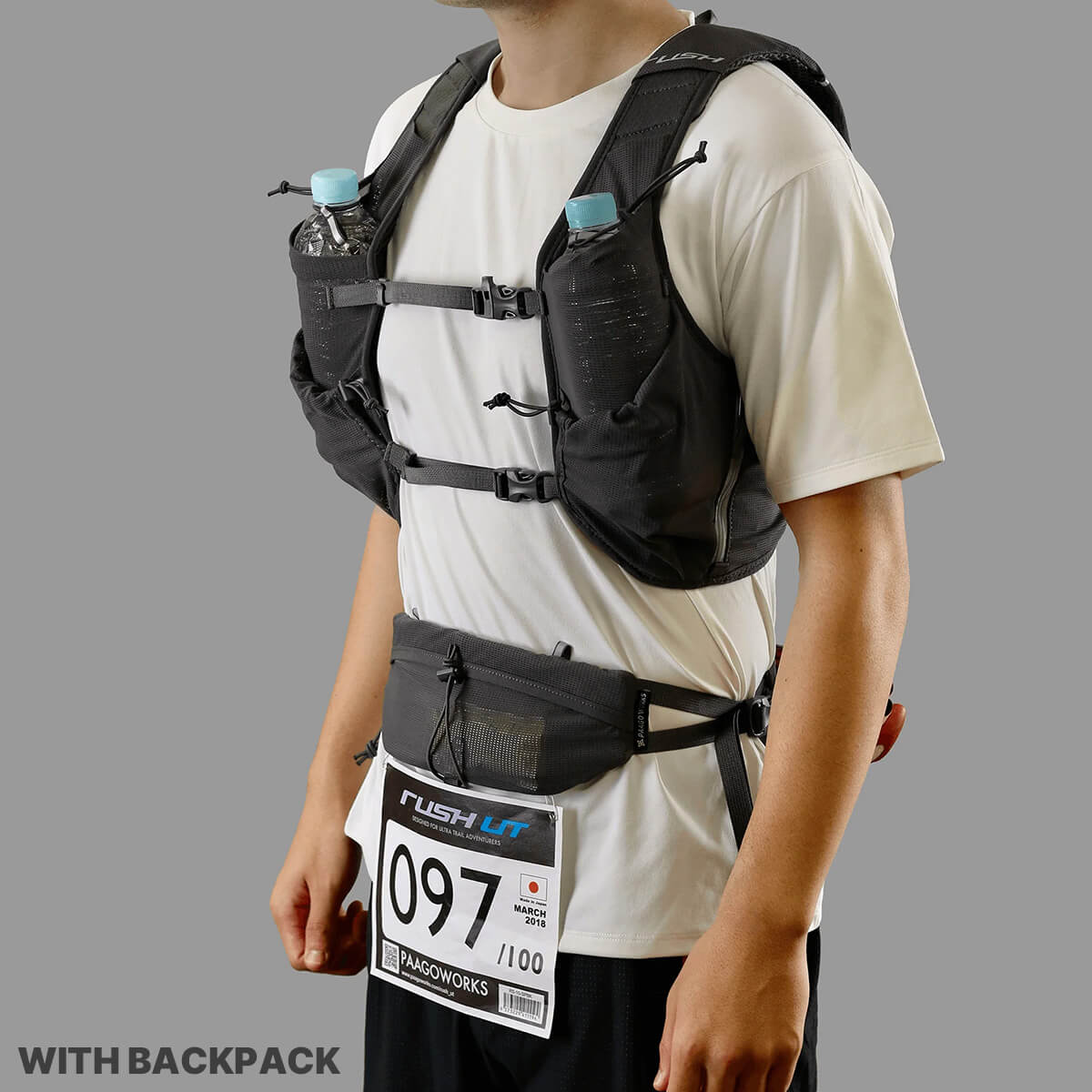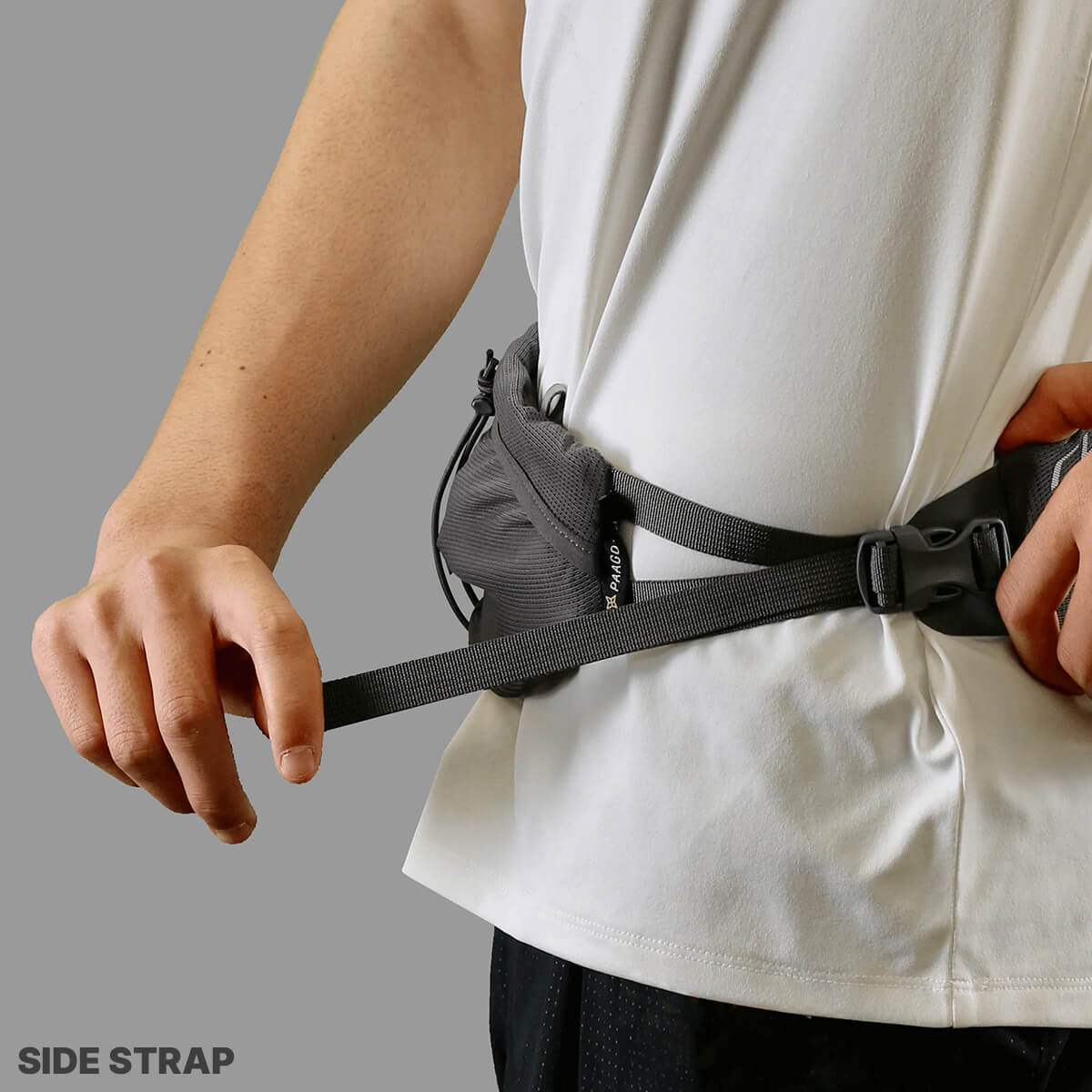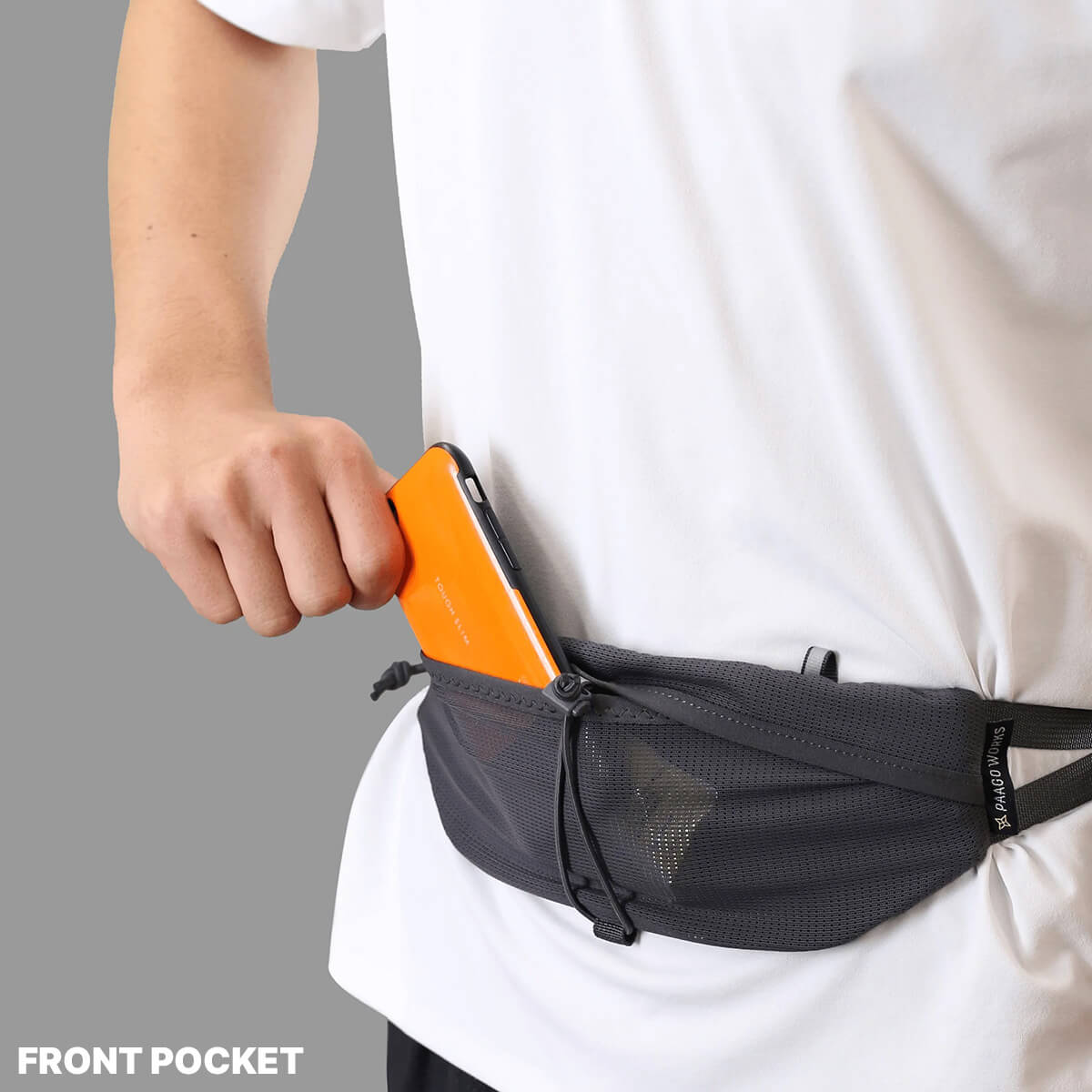 トレーニングからレースまで「かなり」使えるランニングベルト。ユニークな前後ダブルポケットにより、使い勝手の良さとフィット感を両立させました。