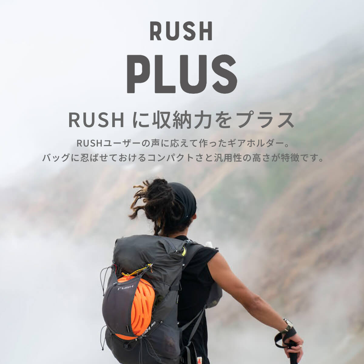 「もう少し収納力がほしい」「外ポケットがあればいいんだけど...」といった、RUSHユーザーの声に応えて作ったギアホルダー。いつでもバッグに忍ばせておけるコンパクトさと、シンプルで汎用性の高さが特徴です。