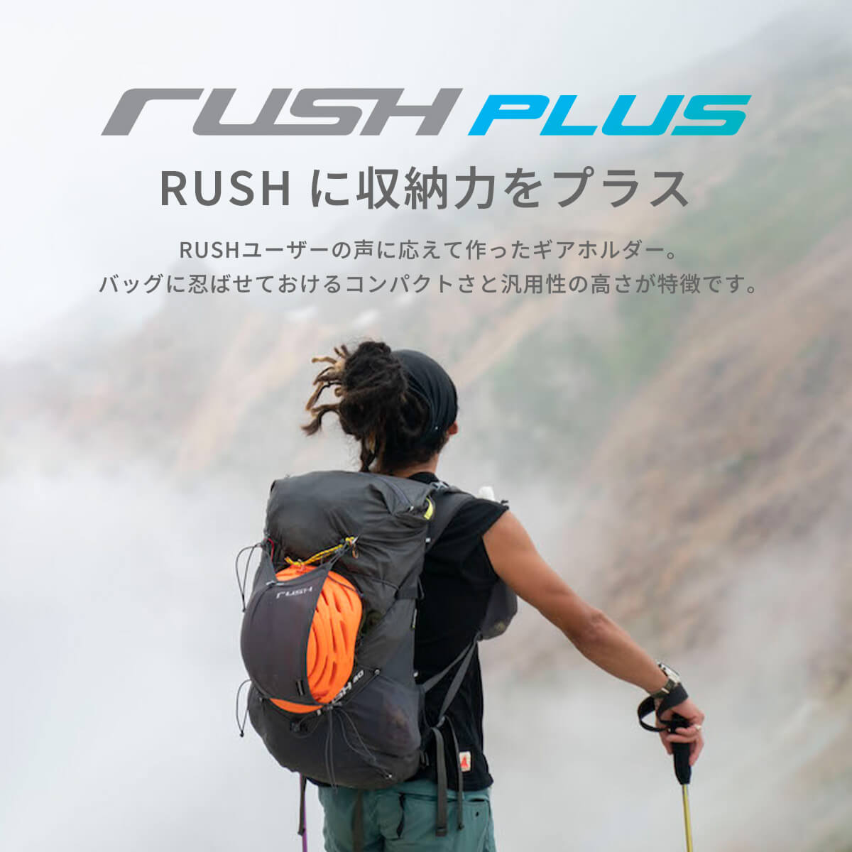 「もう少し収納力がほしい」「外ポケットがあればいいんだけど...」といった、RUSHユーザーの声に応えて作ったギアホルダー。いつでもバッグに忍ばせておけるコンパクトさと、シンプルで汎用性の高さが特徴です。