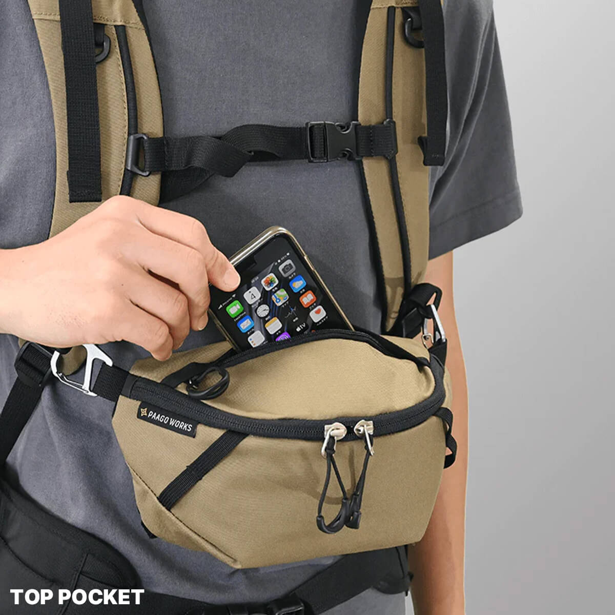 登山中に必要な物を常に身につけておける、進化したユーティリティバッグのMサイズ。