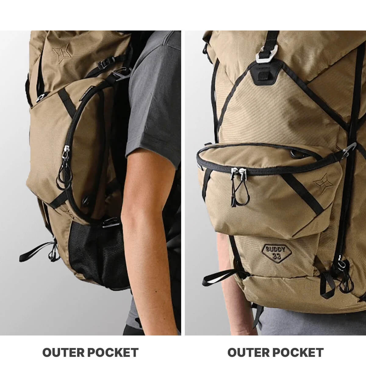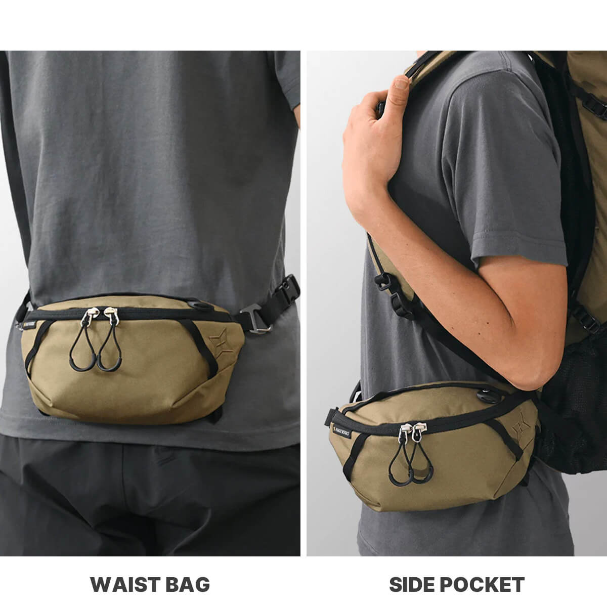 バッグ本体は縦でも横でも斜めでも使えるようにジッパー式を採用しており、徹底的に装備を想定したサイジングを行い、シンプルなフォルム。