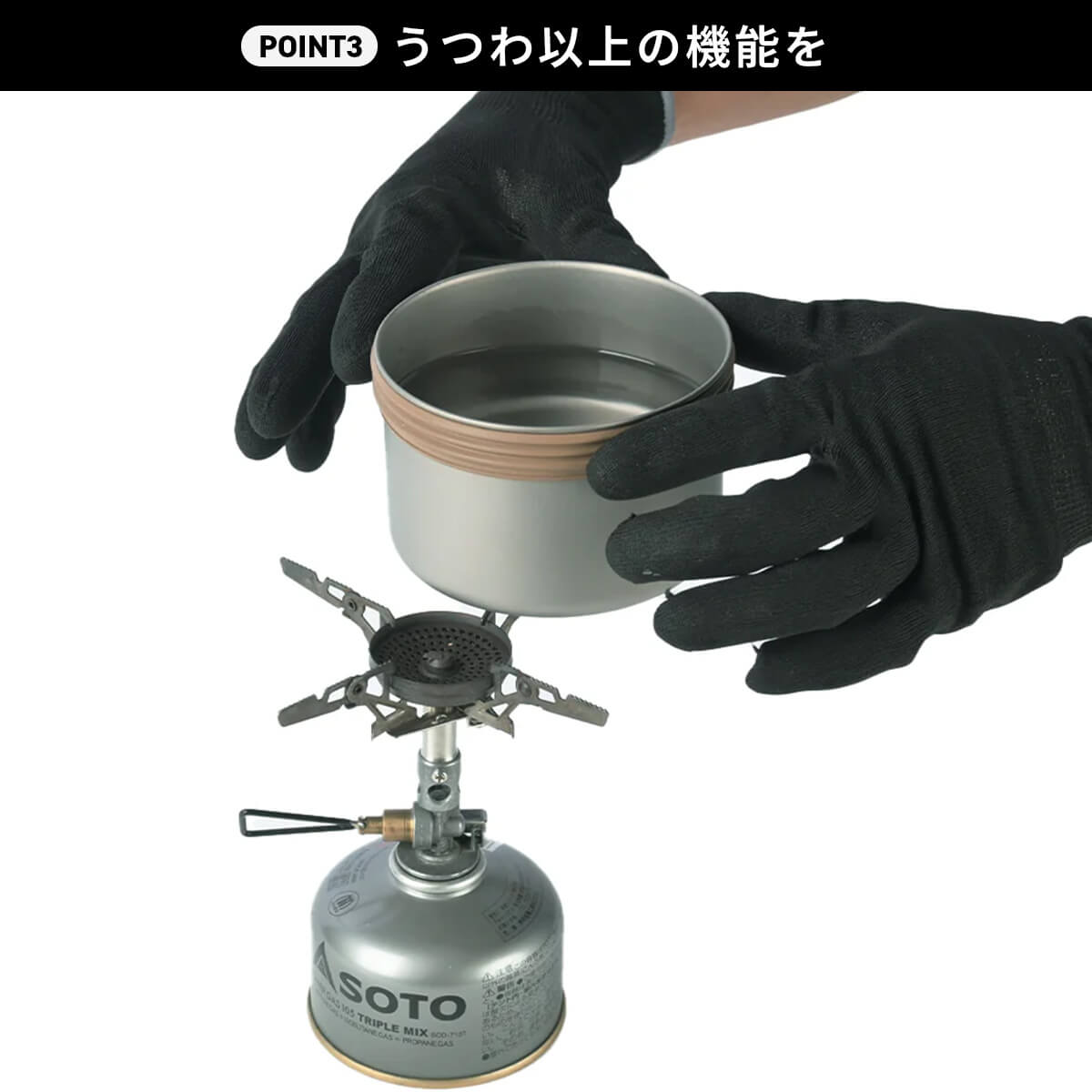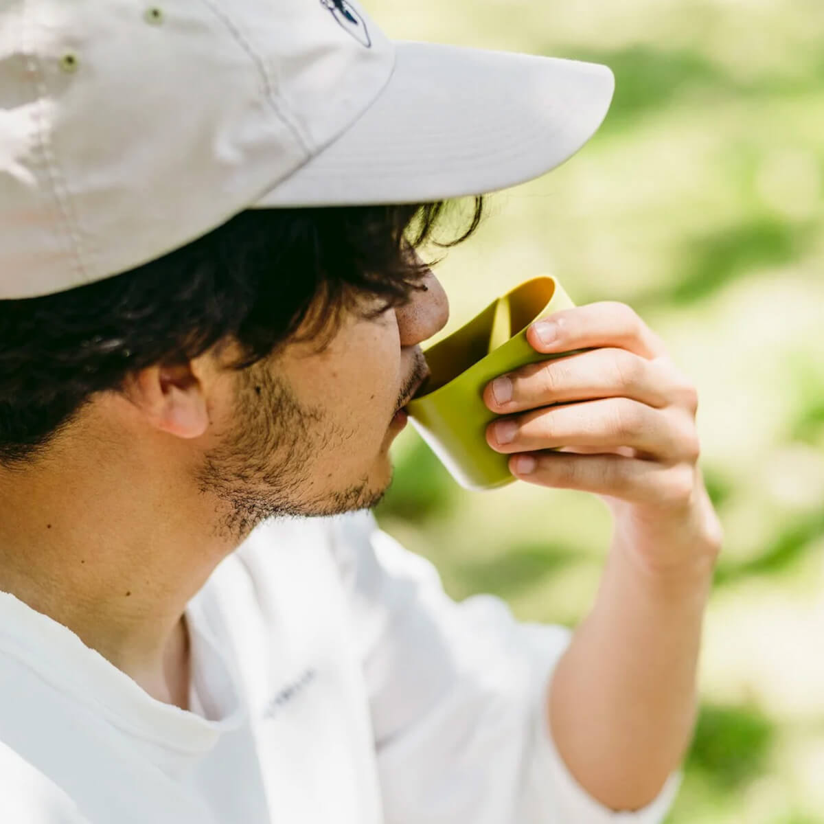 丸型のプラカップとチタンカップは重ねることで、保温性と遮熱性が高まり、簡易的なダブルウォールマグとして使うことができ、熱湯を注いでもすぐに掴むことができます。