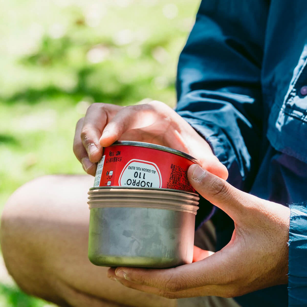 チタンカップはガスカートリッジのサイズに合わせて設計しているため、クッカーとして使うことで、最小の湯沸かしセットを携帯したいウルトラライト思考のハイカーにもおすすめです。