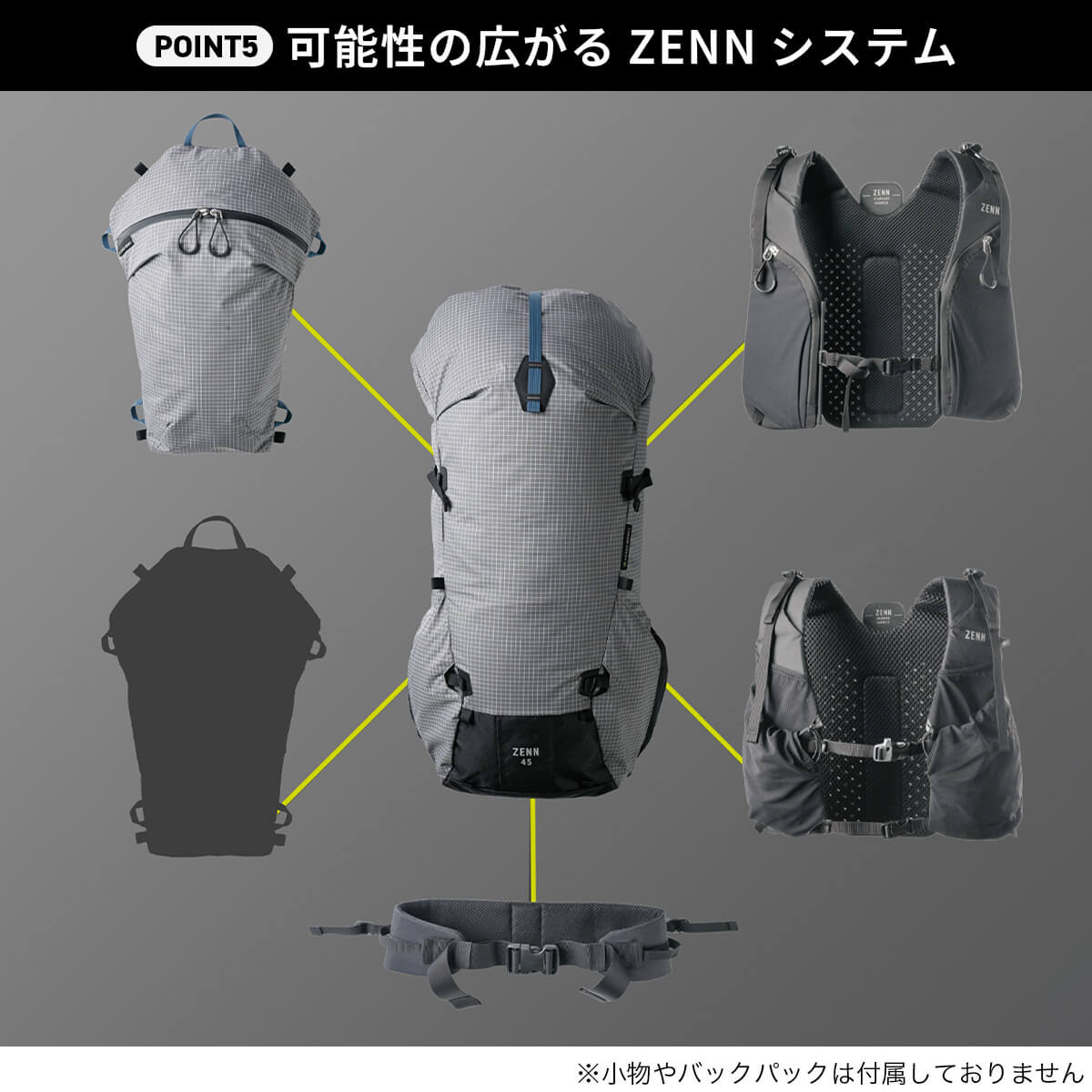 ※本製品はZENNバックパック(25L/35L/45L) 専用のハーネスです。他のバックパックにはご使用いただけませんので、ご注意ください。
