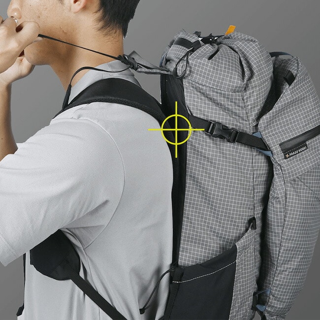 ショルダーハーネスの支点を低く設定し、荷重を肋骨全体に分散することで、長時間の歩行でも快適な背負い心地をキープします。