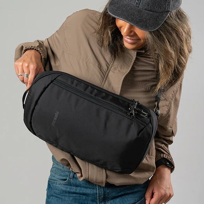 pacsafe パックセーフ V テックスリング は快適で軽量な盗難防止機能付きワンショルダータイプのバッグです。
