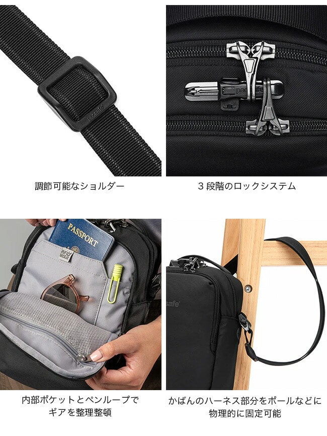 pacsafe パックセーフ Vコンパニオン クロスボディは必需品を簡単に整理して安全に持ち運ぶために設計されたクロスボディバッグです。