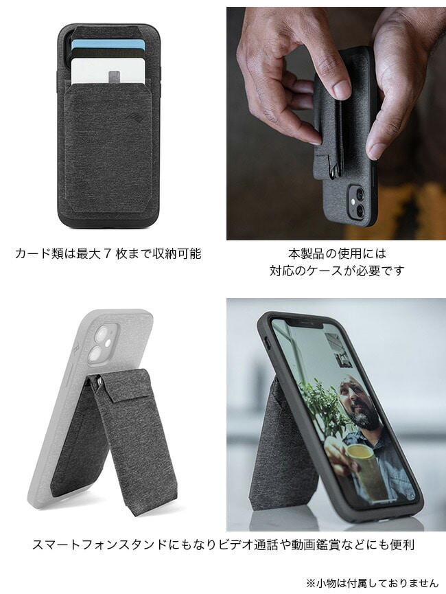 SlimLink™でスマートフォンとカードウォレットを一つにまとめ、手荷物を最小限にできます。カード類は最大7枚まで収納可能で、本体の上蓋を引き上げてスムーズに取り出すことができます。