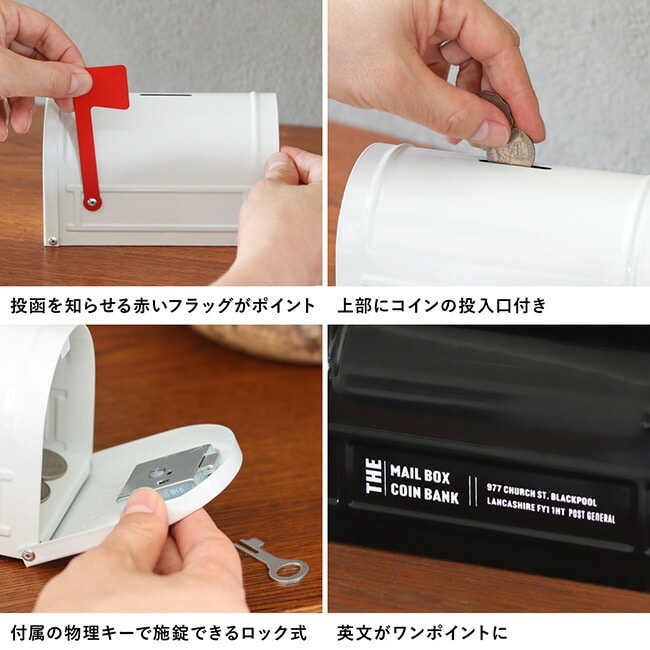 海外の郵便受けをモチーフにした、遊び心あふれるデザインの貯金箱です。
