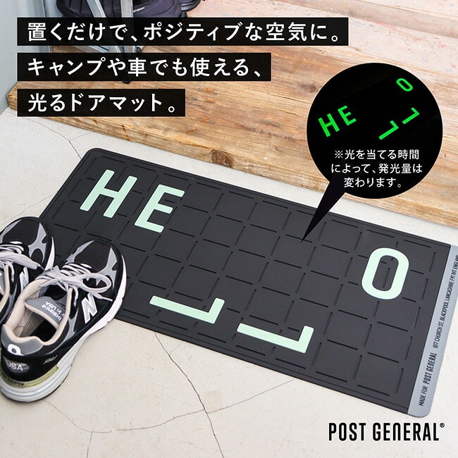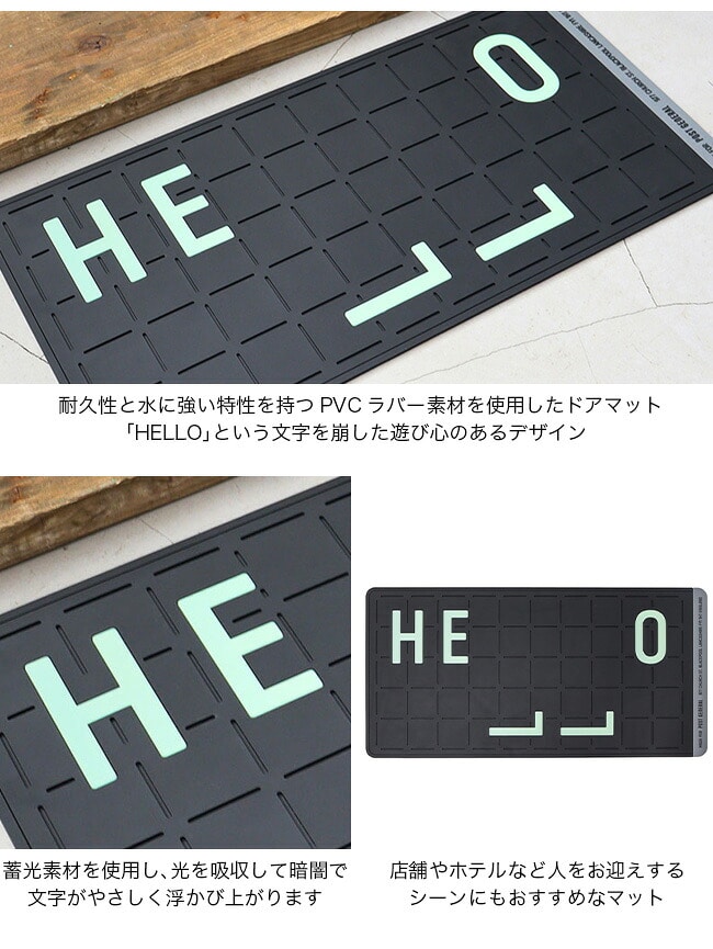 中央には、「HELLO」という文字を崩した遊び心のあるデザインを施しました。さらに、その文字部分には蓄光素材を使用しており、光を吸収して暗闇でふんわりと浮かび上がります。