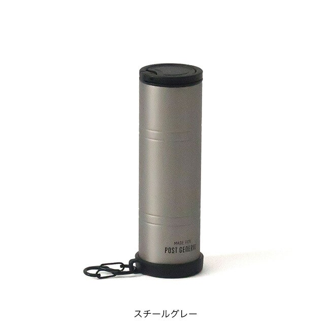 蓋にはハンドル、底面にはカラビナ付きで、バッグやベルトループに吊り下げたまま片手で使えるのも便利なポイント。