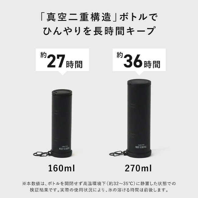 保冷力は160mlで約27時間、270mlで約36時間と、しっかりひんやり感をキープ。