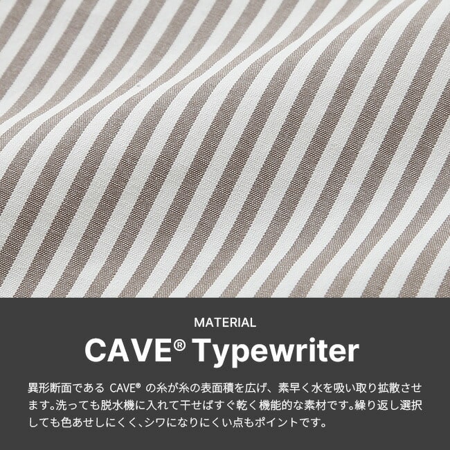 コットンタッチなポリエステルのCAVE®糸を使用したタイプライターです。異形断面であるCAVE®の糸が糸の表面積を広げ、素早く水を吸い取り拡散させます。