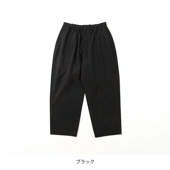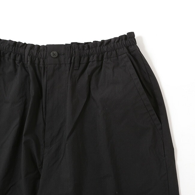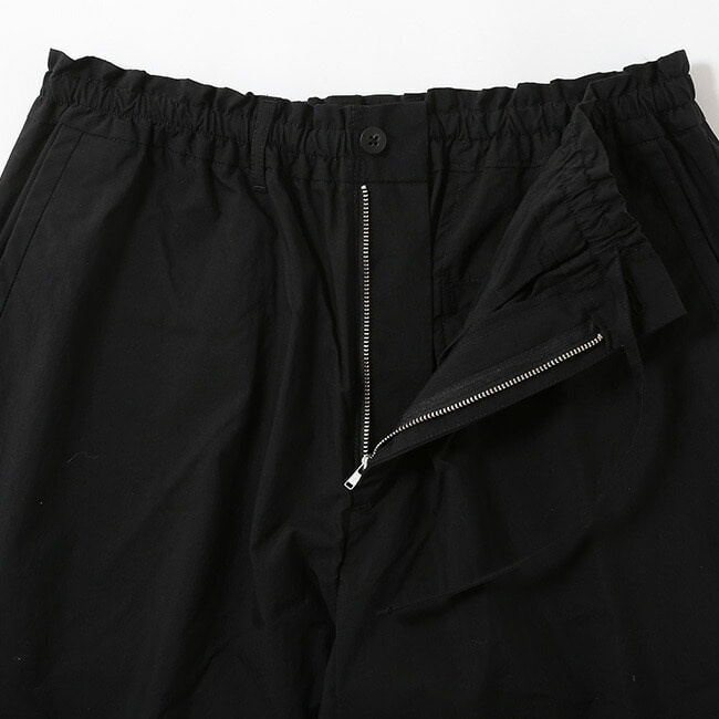 ウエストはイージー仕様で、リラックス感のある快適な穿き心地に仕上げられています。素材には軽さとシャリ感、柔らかさを兼ね備えたコットンポプリンを採用。