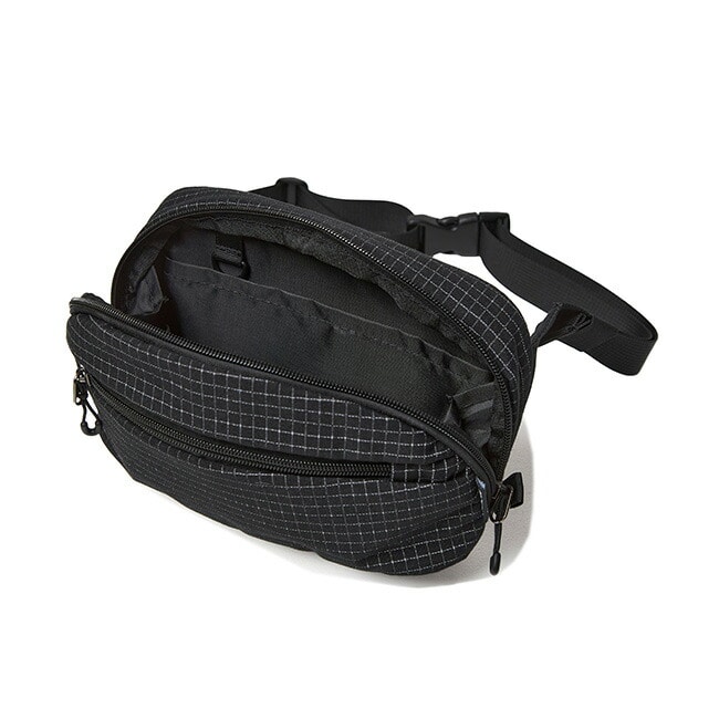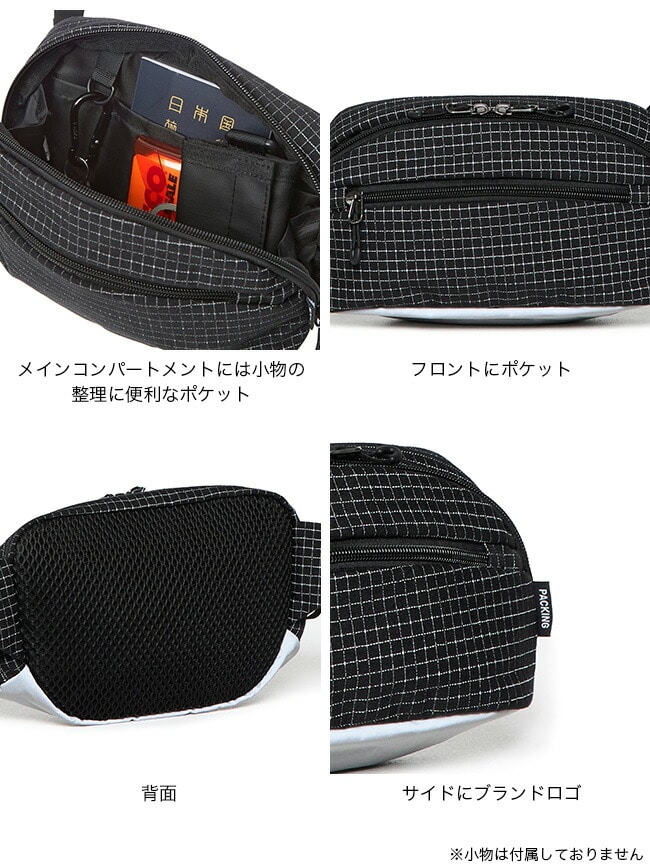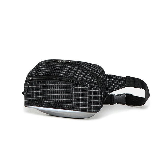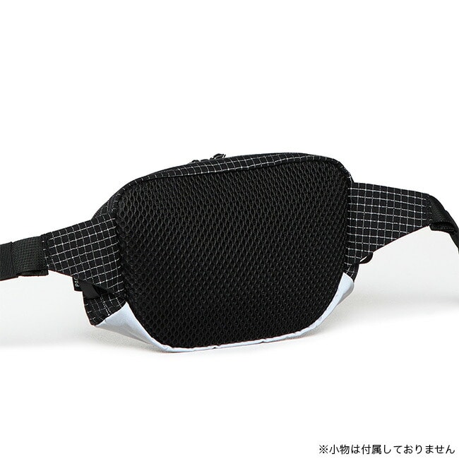 リフレクティブ ナイロンを使用したウエストバッグ。