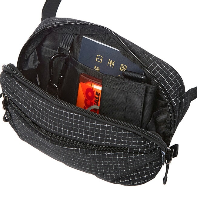 日常使いはもちろん、自転車やバイクでの移動時にも活躍するウエストバッグ。内側にポケットを配置しています。
