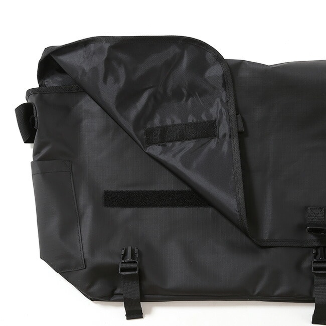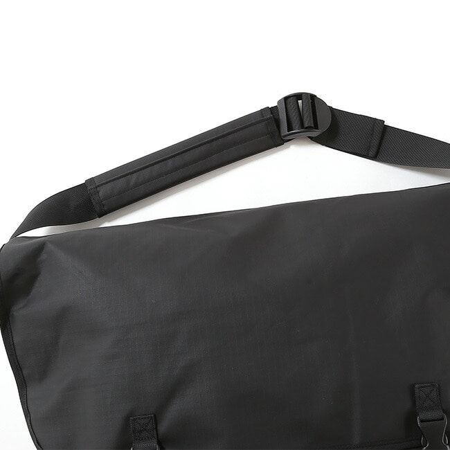 日常使いはもちろん、自転車やバイクでの移動時にも活躍するメッセンジャーショルダーバッグ。サイドにはペットボトルも収納可能なドリンクホルダーを完備。