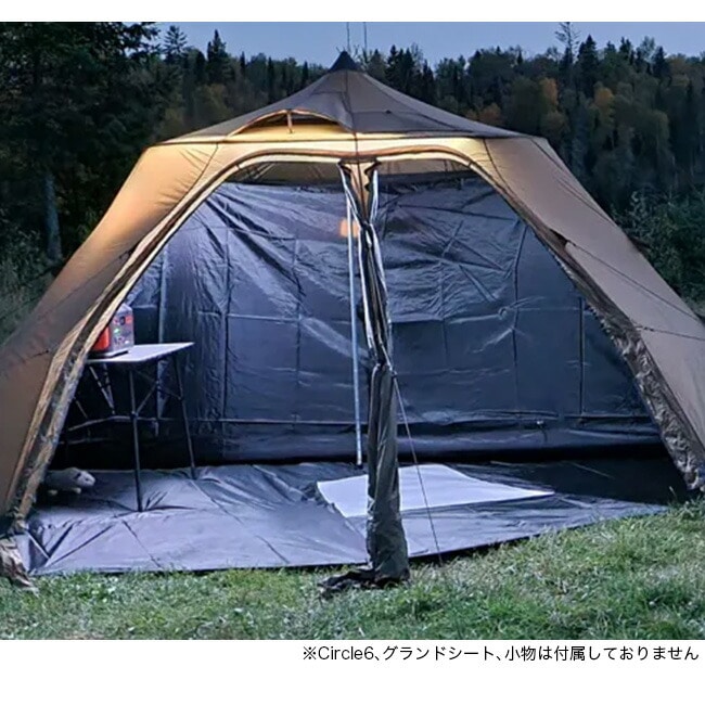 Circle 6 は、冬キャンプのために設計された大型テントです。インナーテント使用時は3人用の広々とした空間があります。
