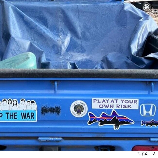 「自己責任にて」という常にアウトドアに付きまとう言葉を、実践している岡部氏だからこそ言える、ストレートなステッカーです。