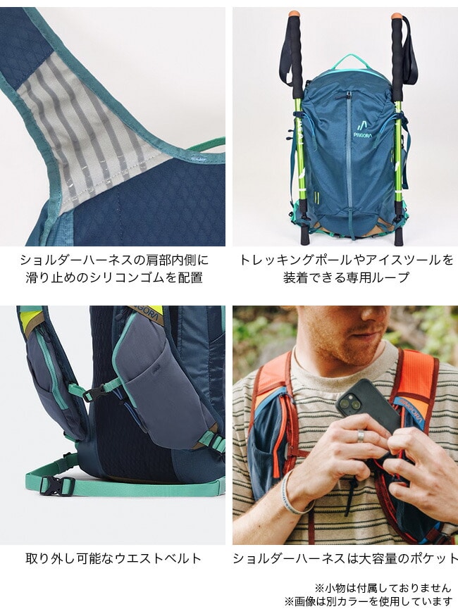 全モデル共通のショルダーハーネスに加え、ウエストベルトを搭載し、フィット感、収納性、アクセス性の向上に貢献しています。