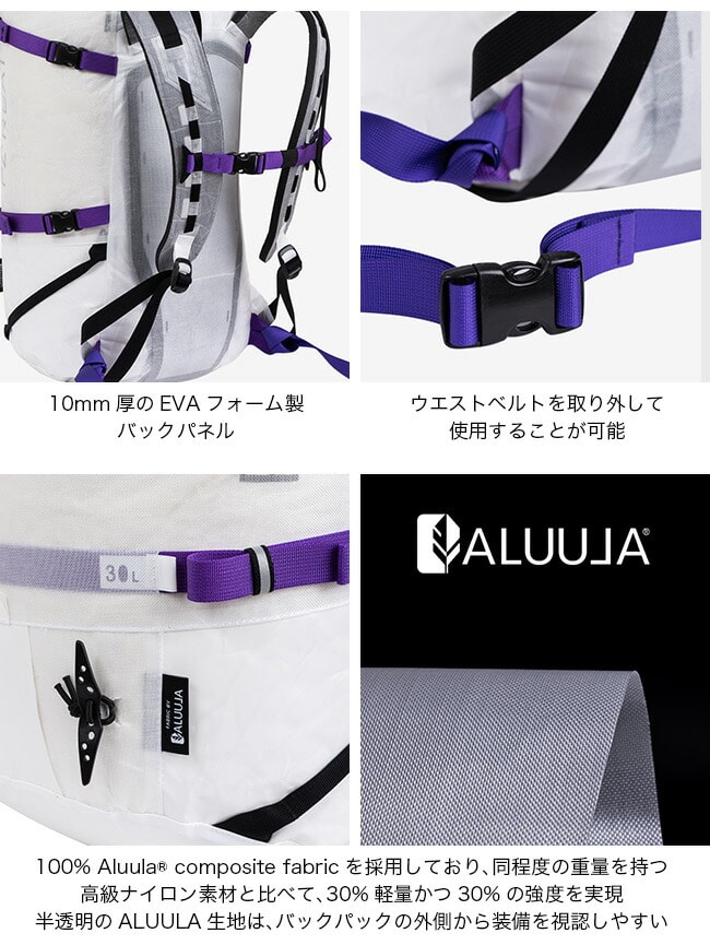 過酷な環境下でのアクティビティに対応するために開発された、エクスペディションライトシリーズ「EL-32L」。100% Aluula® コンポジットファブリックを使用し、軽さと強さを兼ね備えた超軽量・高耐久バックパックです。