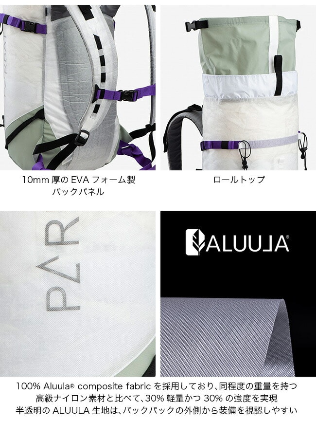 100% Aluula®コンポジットファブリックを採用し、従来素材より約30%軽量かつ高強度を実現。半透明の生地で装備の視認も可能です。