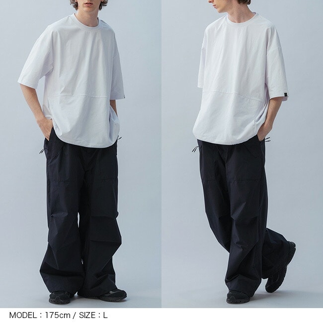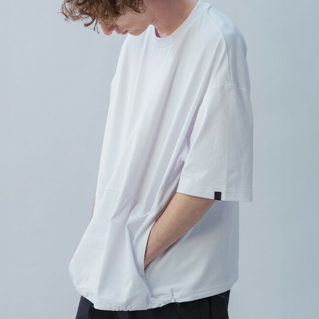 コットンライクな吸水速乾素材にハンドポケットとドローコードを融合させた、シルエットの変化を楽しむTシャツ